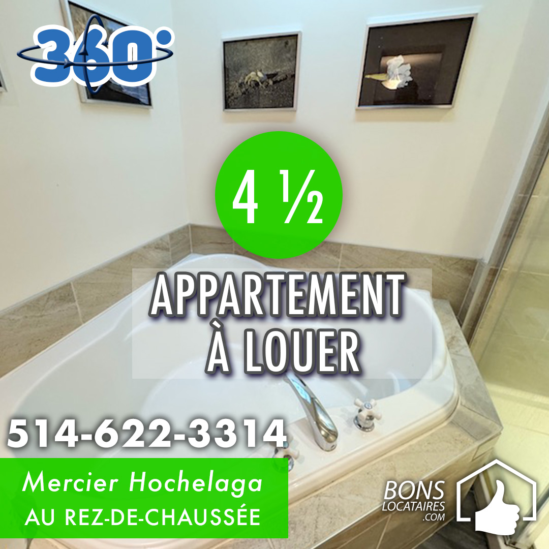 Premièrement ce grand appartement à louer dans le quartier de Mercier Hochelaga 4 ½ est idéal et exclusivement pour de bons locataires, faite une visite virtuelle 360° guidée (Appartement tour 360°) sur la meilleure chaîne YouTube d’appartements à louer au Québec de ce très bel grand logement 4 ½. Impeccable complètement rénové au rez-de-chaussée, très ensoleillé. Appartement meublé tout inclus pour une période de 3 mois. Idéal pour de bons locataires paisibles ! Visite virtuelle 360º disponible sur notre chaîne YouTube Bonslocataires.com.