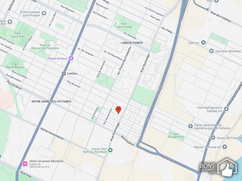 Tout d’abord, ce grand appartement à louer est dans un secteur résidentiel et paisible du quartier Mercier Hochelaga à quelques minutes du Centre-ville de Montréal. Deuxièmement, il se situe près de l’intersection de la rue Hochelaga sur la rue Louis-Veuillot. Troisièmement, cet appartement à louer est à 5 minutes de marche du grand parc Joseph-Thibodeau, la base militaire Longue-Pointe, arrêt de bus au coin de la rue, cafés, restos et encore plusieurs autres commerces et attractions. Finalement, ce beau grand logement 4 ½ est aussi très spacieux et il est situé au rez-de-chaussée bien lumineux avec de très grandes fenêtres. Idéal pour de bons locataires, payeurs, paisibles et propres ! Visite virtuelle 360º disponible sur notre chaîne YouTube Bonslocataires.com.